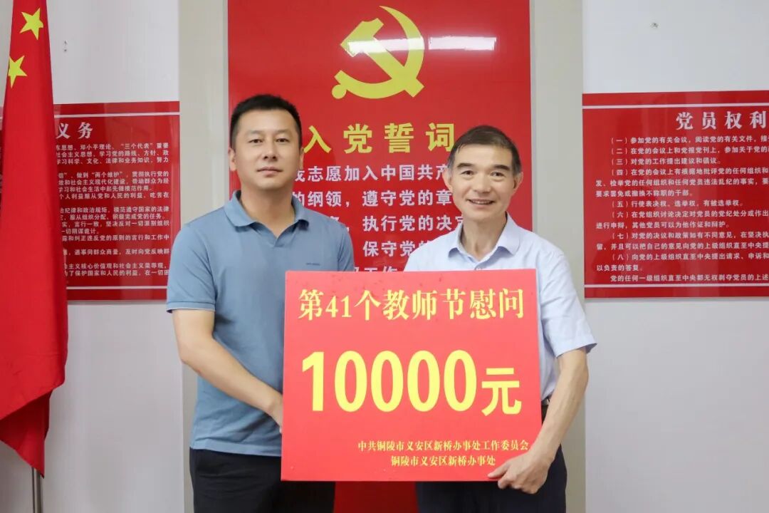 金秋送爽,桃李芬芳。在第41个教师节来临之际,新桥办事处党工委书记董胜一行莅临铜陵皖江学校,开展教师节走访慰问活动,向躬耕教坛的全体教师致以节日问候与深切关怀。此次慰问不仅传递了尊师重教的温暖情谊,更彰显了地方政府对教育事业发展的高度重视与坚定支持。