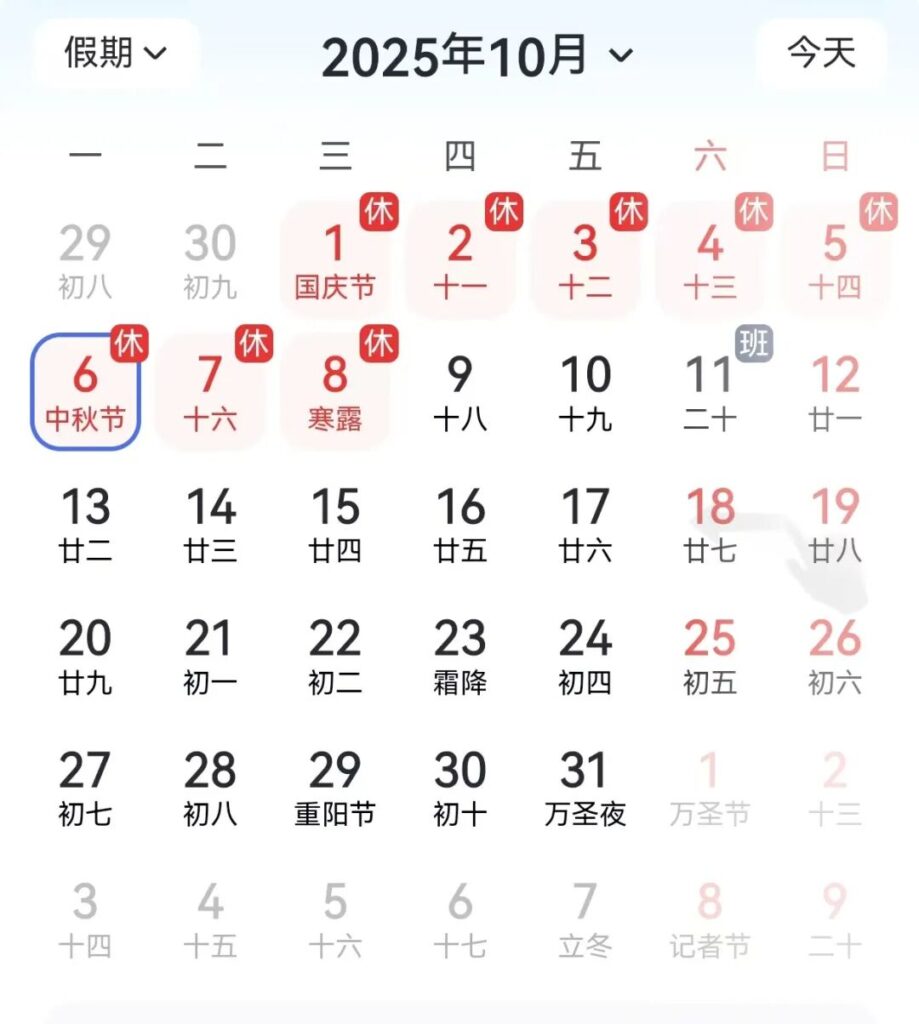 根据国务院办公厅关于 2025 年部分节假日安排,国庆节逢中秋节合并放假,现将 2025 年国庆节、中秋节放假调休日期的具体安排通知如下:
