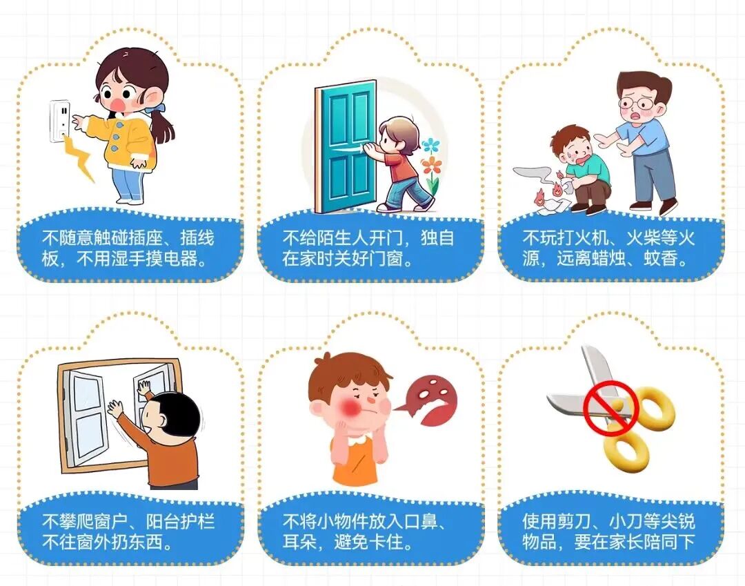 居家时要提高安全防范意识,不要随便为陌生人开门,若其坚持进入,应及时联系家长,不向楼下抛东西,不攀爬阳台、门窗或其他高处,谨防摔伤、坠落。