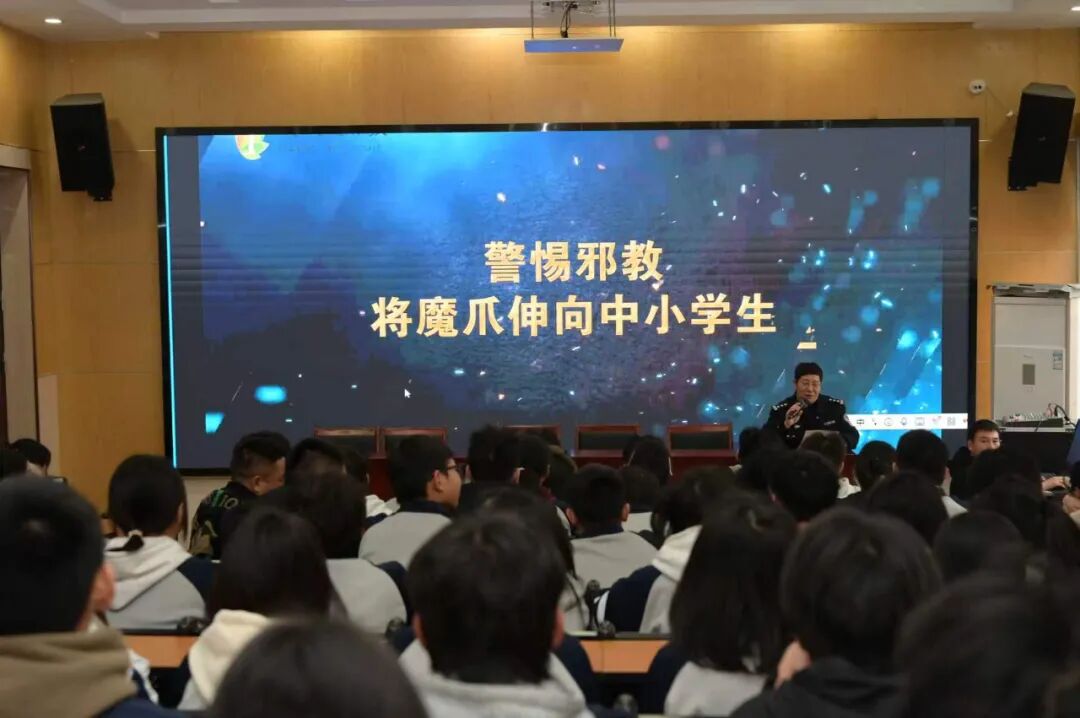 讲座围绕“防邪教、禁毒、防校园欺凌”三大核心主题展开。陈正德警官结合真实案例,用通俗易懂的语言向同学们剖析了邪教的本质特征、常见手段及危害,引导学生认清邪教组织的欺骗性,增强防范意识;在禁毒宣传环节,他通过播放警示视频,详细讲解了新型毒品的伪装形式和成瘾机制,呼吁同学们珍爱生命、远离毒品;针对校园欺凌问题,陈警官从法律角度解读了欺凌行为的界定与后果,并传授了“勇敢说‘不’、及时求助、团结互助”等应对策略,鼓励同学们争做“校园安全小卫士”。